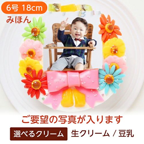 デコ盛りファーストバースデーフォトケーキ【6号 18cm】4人~8人用
