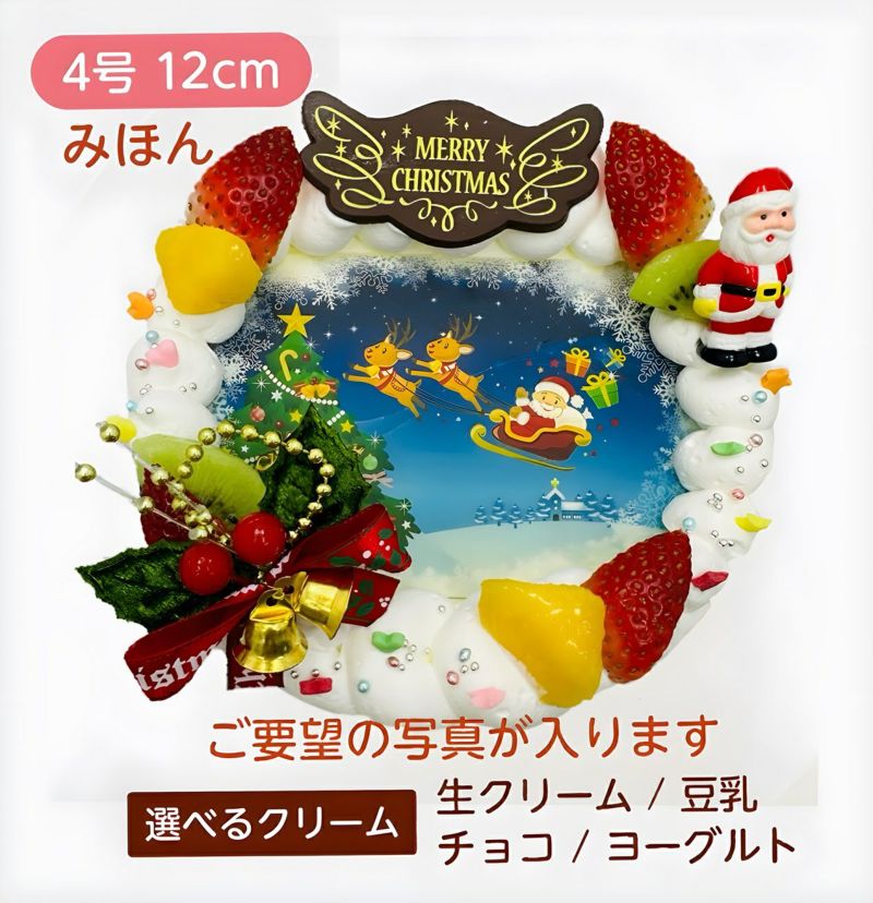 クリスマスフォトケーキ【4号 12cm】1人~3人用