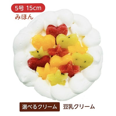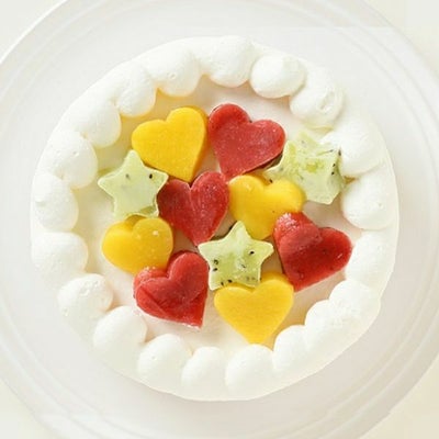 写真の飾り付けはせず、イチゴ・マンゴー・キウイの自家製フルーツゼリーを可愛く飾り付けたシンプルなケーキです。