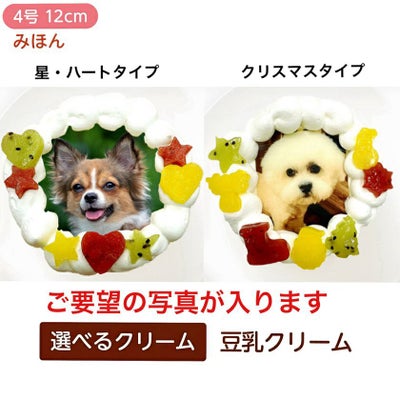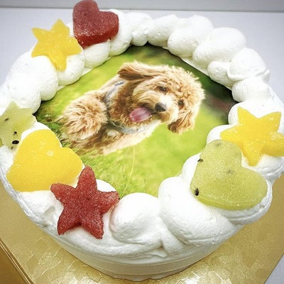 主役のワンコ・ニャンコがケーキの真ん中になるよう画像の編集、配置をさせていただきますが、2匹、3匹と複数写っているワンコやニャンコが離れていたり、画像の端の方に写っていたりすると、飾り付けのためにケーキの周りに絞るクリームで隠れてしまう場合があります。