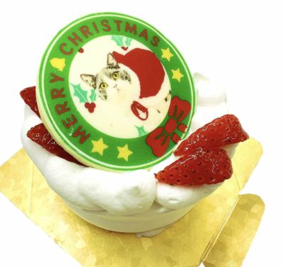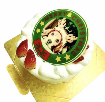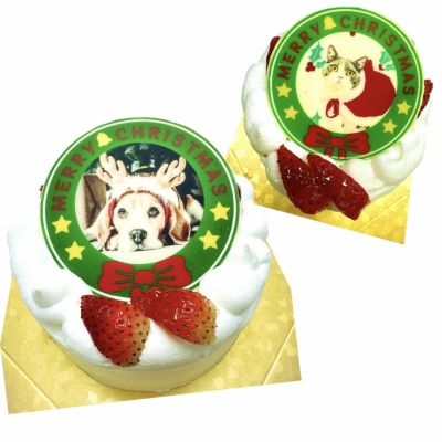 クリスマス わんこ&にゃんこポップアップ写真ケーキ【3号 9cm】