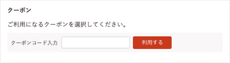 お支払い方法選択画面のクーポン欄にクーポンコードを入力し「利用する」ボタンをクリックいただくと利用できます。また取得済みのクーポンは「利用中」として選択されています。